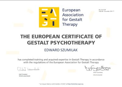 Certyfikat psychoterapeuty Europejskiego Stowarzyszenia Psychoterapii Gestalt